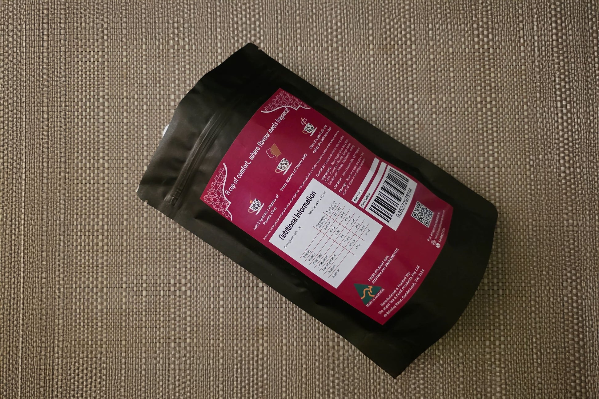 Ingredients: Raw Sugar, Black Tea Extract, Cardamom Powder, Cinnamon Powder, Clove Powder, Ginger Powder, Nutmeg, Maltodextrin.